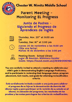 - Parent Meeting - Monitoring EL Progress/Junta de Padres - Siguiendo el Progreso de Aprendices de Inglés