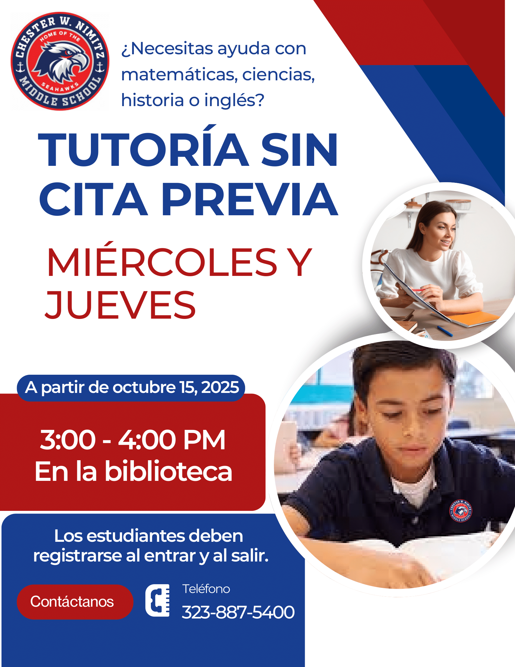 Weekly Drop-in Tutoring Has Begun! Join us in the Library from 3-4 PM