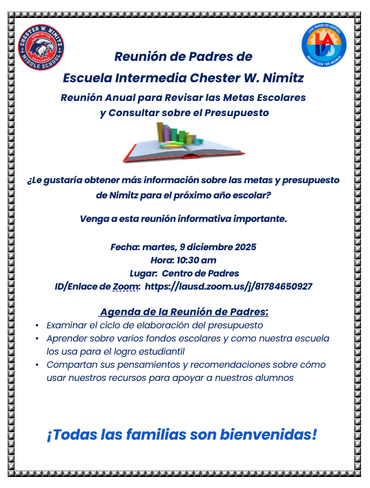 12/9 Annual School Goals & Budget Consultation Meeting / Reunión Anual para Revisar las Metas Escolares y Consultar sobre el Presupuesto